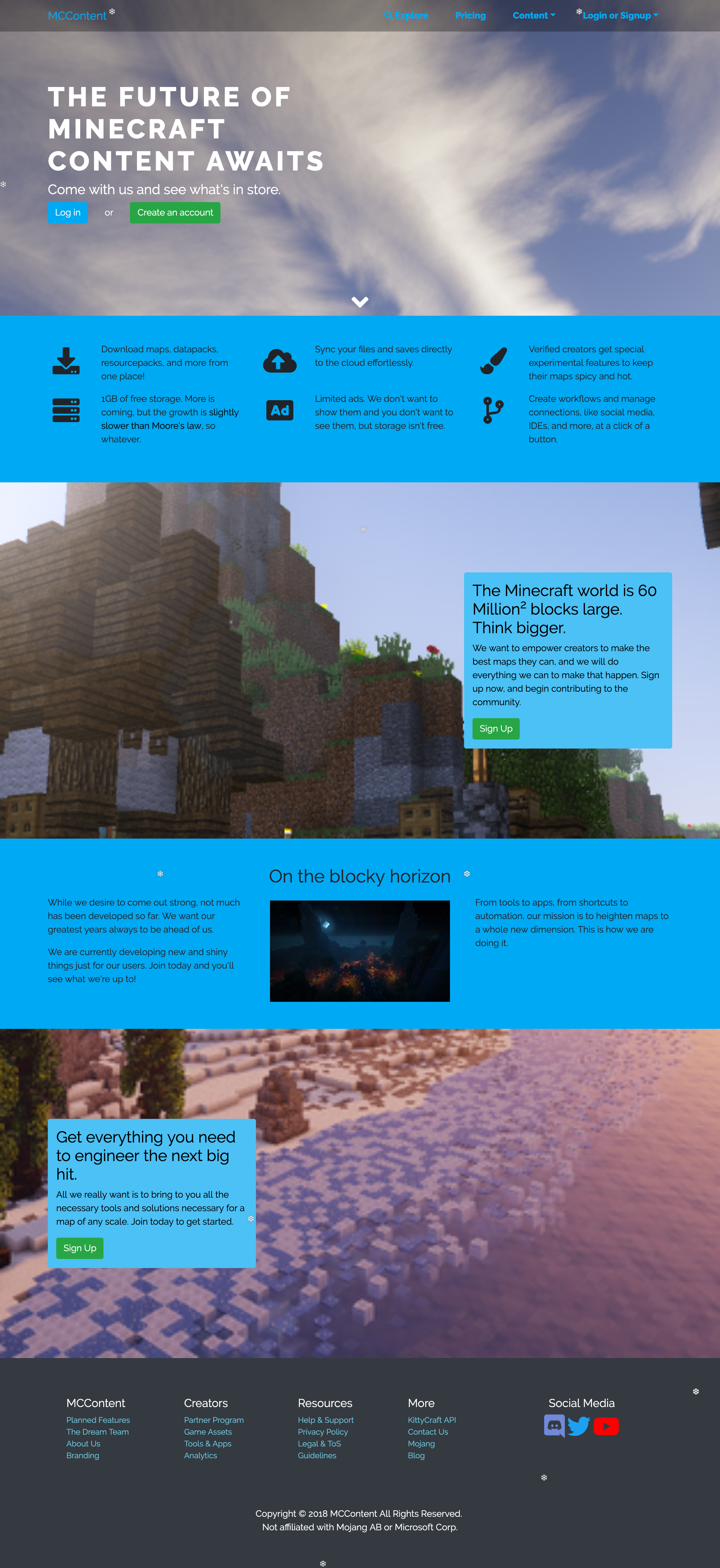 The website started in 2016 as “MC Map Hub” with the hope that it would become a player in the Minecraft map-sharing world. The next year it would be renamed to MCContent.